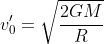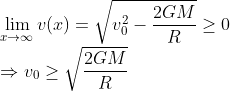 그러면 지구탈출속도 v_0'는 x가 무한대로 갈 때, 저 v(x)가 0보다 커야 한다.