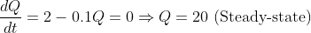 => 결국 물의 양은 "안정된 상태"로 갈 것이고, 이 "안정된 상태"라는 말은 => dQ/dt=0을 뜻한다. (물이 들어오는 양과 나가는 양이 동일해진다.) -> 이러한 상태를 "Steady State"라고 한다!
