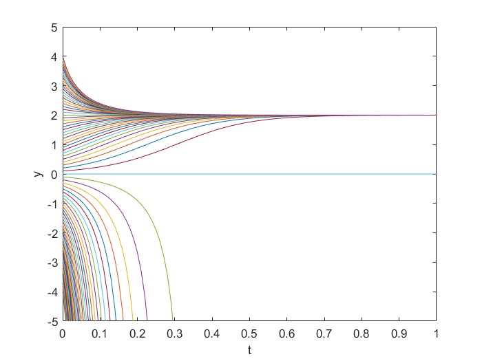 Integral Curve란, 주어진 미분방정식에서 t와 y에 대해서 그래프를 그린 것을 말한다. 자세한 내용은 Example을 참고
