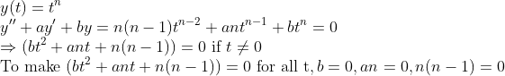 그러므로 유한차항 다항함수는 "일반적인 2차 상미분방정식"의 해로써는 불합격이다.