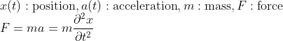 사실, 1차 미분방정식보다는 훨씬 더 많이 보이는데, 아무래도 물리학의 기본이 되는 "F=ma"가 바로 2차 미분방정식이기때문이다. (x가 시간 t에만 관여된 함수이면, 편미분이나 상미분이나 똑같다!)