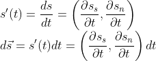 여기서 s_s, s_n는 각각 곡선의 방향 성분, 곡선의 수직(normal) 방향 성분을 뜻한다. 그러나, 당연히 곡선은 1차원이기 때문에, 곡선에 수직인 성분은 0이다. (s_n=0)