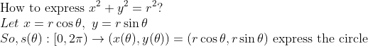 이 두 개의 곡선 또한, 원을 표현한다. 다만 s-는 반대방향, s_1은 원을 두 바퀴 돌 것이다.(단, s_1의 경우에는 겹치기 때문에, 원래의 곡선하고 일치하지는 않는다. -> 0<=theta<pi로 범위를 잡으면 된다.) 이러한 방식으로 곡선을 다시 정의하는 것을 재매개화(reparametrization)이라고 한다.