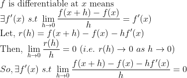 이런 식으로 생각하면, 분수 꼴을 해결할 수 있고, limit 내부의 벡터값을 norm을 취하면 다변수함수일 때도 그대로 이용가능하다. 그러므로 다변수함수의 미분은 다음과 같이 정의된다.