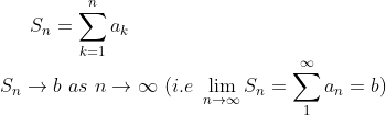(급수 S_n이 b로 수렴한다)는 다음을 뜻한다.