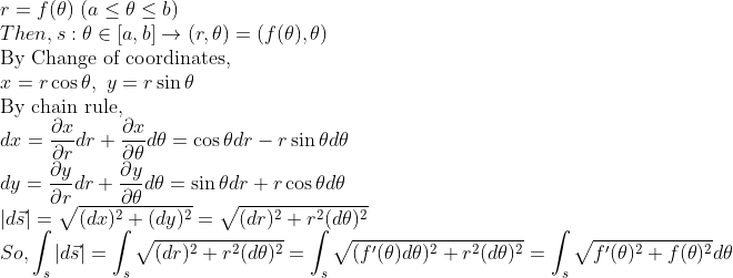 즉, 직교좌표계에서 보는 길이의 정의와, 극좌표계에서 보는 길이의 정의는 값은 같지만, 다른 방법으로 정의된다.