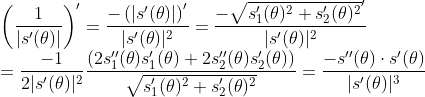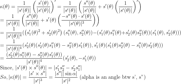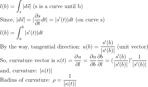 곡선의 길이는 이미 알고 있으므로, 곡률은 다음과 같이 구할 수 있다.