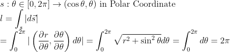 극좌표계에서 주어진 곡선이 다음과 같다고 하자. (원을 두바퀴 돈다.)