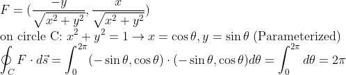 원을 따라서 선적분을 했더니, 0이 안 나오고, 2pi가 나온다...
