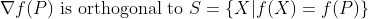 즉, grad f(P)와 곡선의 속도벡터는 수직이다.