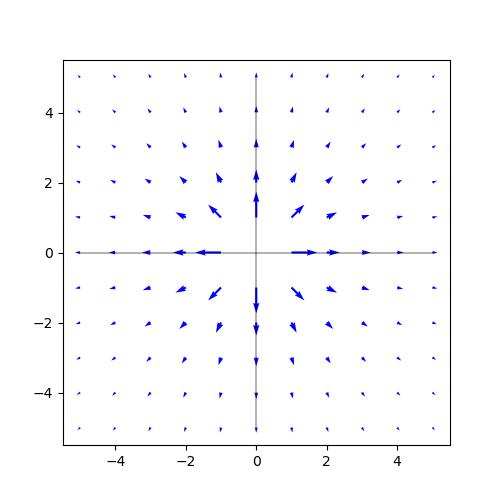 예를 들어서 물리에서 전기장의 경우, (0,0)에 전하량이 +1인 전하가 있다면 (x,y)에서의 전기장은 다음과 같을 것이다.