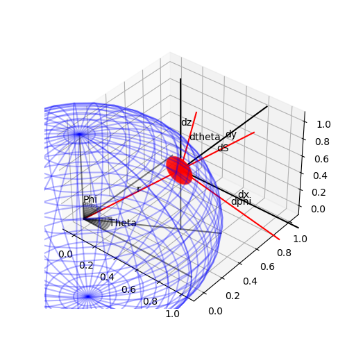 즉, phi와 theta가 약간 변할 때, 면적이 얼마나 변하는지 알아야 한다. 이를 위해서 다음처럼 생각하자.