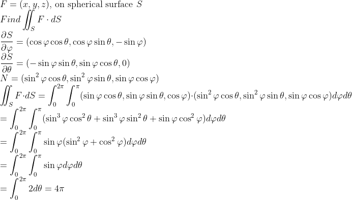 여기서 dS는 그럼 곡면의 (방향을 가지는) 아주 작은 변화량이어야 한다. 곡면의 방향은 (수직벡터)로 정해줄 수 있으므로, 곡면 위의 두 벡터를 잡아주어서 외적을 통해 수직벡터를 구해줄 수 있을 것이다.