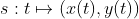 xy좌표계에서 t가 dt만큼 변하면, 곡선에서 곡선벡터 s가 s'(t)dt만큼 변한다. |