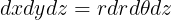 그러므로 위에서 미소부피의 변화는 determinant의 크기에 의해 변화되고, 정리하면 다음과 같이 쓸 수 있다.