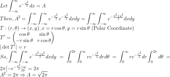 일변수함수 적분을 다중적분으로 바꿔서 (동일한 것을 또 곱해서) 극좌표계로 변환하면 풀린다!