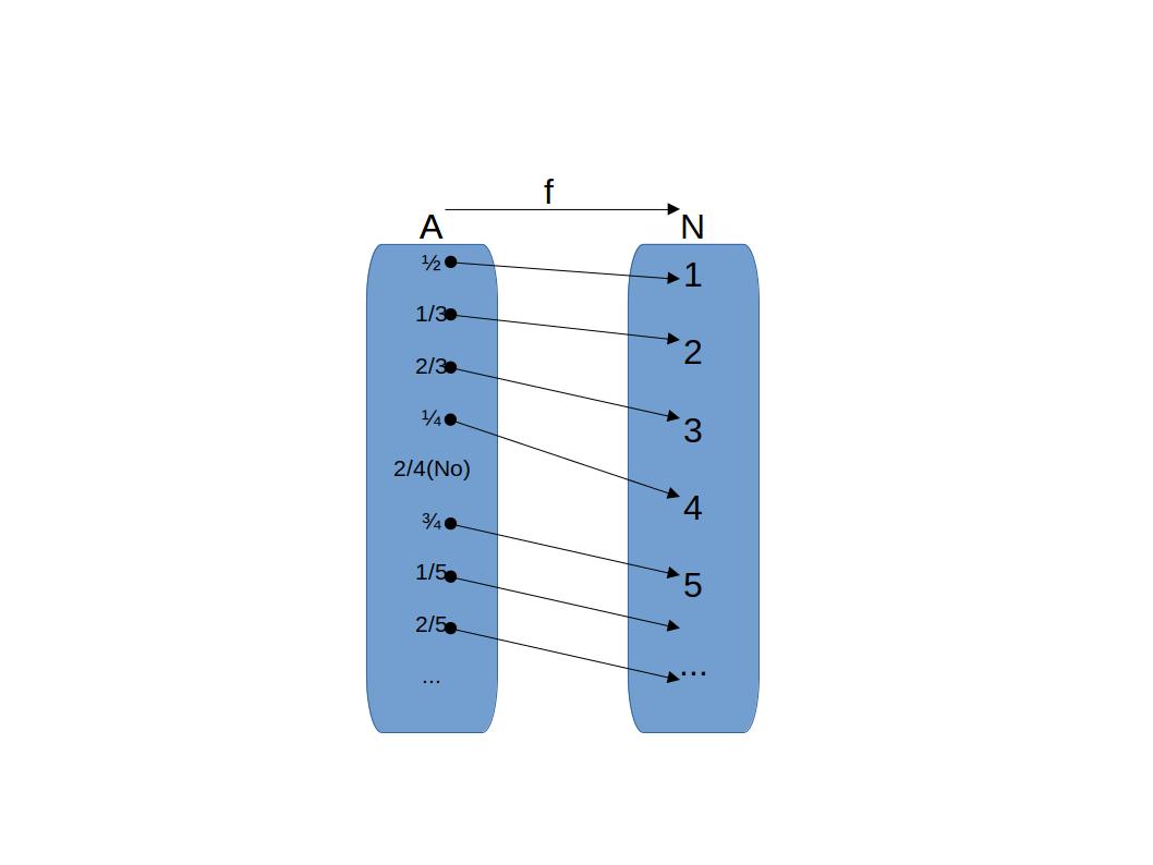 c. 유리수집합 -> 분모를 1,2,3,4,.... 이런 식으로 늘려가고 분모가 n일 때, 분자를 1,2,3,....,n-1 이런식으로 줄세워서 셀 수 있다.
