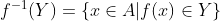 (만일, f(1)=2, f(2)=2 이면, f^{-1}(2)={1,2} 이다.)