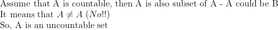 A의 countable 부분집합을 잡아서 이것이 진부분집합이라는 것을 보이면 된다.