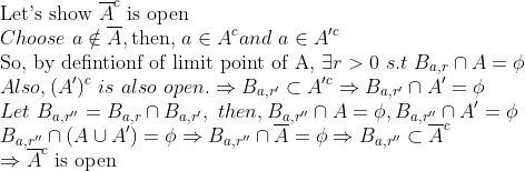 즉, A와 그 극점의 집합의 합집합이다. 여기서 나오는 A'도 계속 쓰는 notation이니 체크하자.