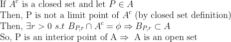 3. 위의 Union/Intersect 관계와 open/closed set의 여집합 관계를 1번에 쓰면 된다.