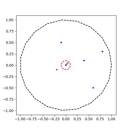 그러면, 그 중에서 p와 가장 가까운 A의 원소를 q라고 하자. 이때, 둘 사이의 거리를 d(p,q)라고 하자.