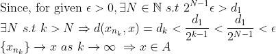 이 부분수열이 x에 수렴하므로, x는 A의 원소이다. -> closed set이다.