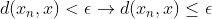 {x_n}이 x로 수렴한다고 하면(x는 unique!), 어떻게 반지름을 잡아도, infinite 개수의 항이 open ball에 들어가게 된다.