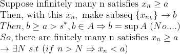 즉, upper limit에서 저런 N을 잡을 수 없다면(즉, finite 개수의 항만 a보다 작다면) a가 s*보다 작거나 같다.