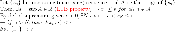 그러면, 이번에도 이 단조수열에 LUB 성질을 이용해보자