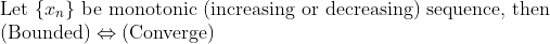 즉, 단조수열에 대해서 유계이면 수렴하고, 수렴하면 유계이다.