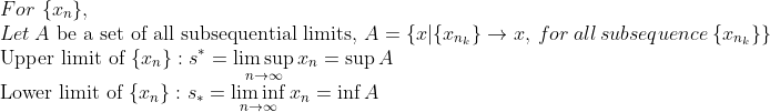 그러므로, 수열의 upper limit와 lower limit를 다음과 같이 정의하자.