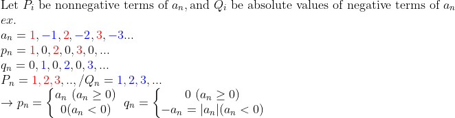 그러면 양수항과 음수항을 각각 m_n, k_n개 씩 번갈아가면서 재배열을 만들 수 있다. 즉,