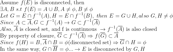 앞에서도 잠깐 언급했었지만, 연속함수는 Connected set을 보존한다고 하였었다. 이를 증명해보자.