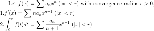 즉, 원래의 power series가 수렴하는 x에서는 미분이나 적분을 해도 그 x 범위에서는 수렴성을 보장한다는 내용이다.