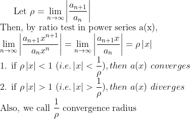 (Convergence of Power Series) -> Root Test를 이용하던지 Ratio Test를 이용하던지 상관은 없지만, Ratio Test가 더 엄격하고 부호에서도 자유로워 이 챕터에서는 Ratio Test를 중심으로 전개한다.