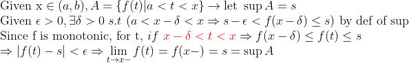 1. 먼저, sup f(t)=f(x-)임을 증명한다.