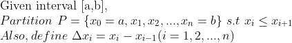 먼저, 구분구적법에서의 "등분"이란 구속조건을 없애기 위해서 Partition이라는 것을 정의하자!