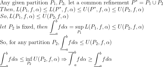 위의 L과 U를 이용해서 Upper Integral, Lower Integral을 구할 때, 모든 Partition에 대해서 inf, sup을 취했었다...