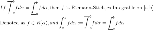 여기까지, 리만스틸체스 적분에 등장하는 Upper/ Lower Integral에 관한 이야기를 하였다.