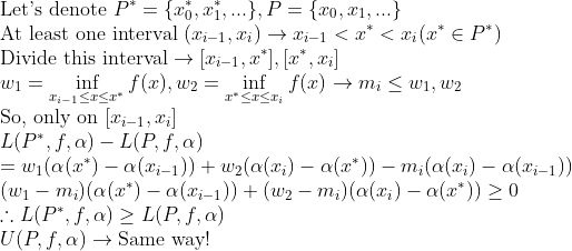 즉, Partition P가 주어져 있다면, P*는 P의 원소 그대로 가지고 있고, P에서 더 잘게 나눈 것이다!
