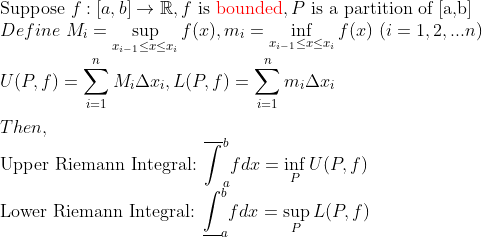 여기까지 리만 적분을 정의하는데에 필요한 것들이고, 리만 적분은