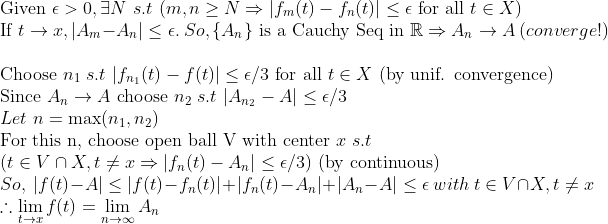 즉, 모든 f_n에서 t=x에서 연속이고, Uniformly Converge이면 f가 t=x에서 연속이다!