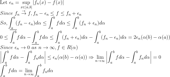 즉, Uniformly convergent해야 적분과 lim 순서도 바꿀 수 있고, 적분가능성도 보존된다!