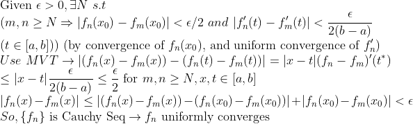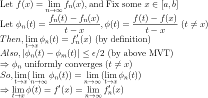 여기서, f_n이 Uniform Convergence를 만족하는 것이 아니라. f_n'이 uniformly convergence를 만족하는 것에 주목!