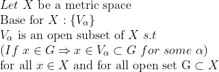 G가 open set이므로, x를 중심으로한 어떤 open ball이 G에 포함될 것이다. -> 그 반지름보다 작은 유리수 반지름을 잡아보면, 그 open ball은 {V_alpha}에 속할 것이다!