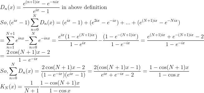 먼저 Dirichlet Kernel도 평균값을 내주자! -> Fejer Kernel이라고 한다.