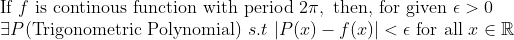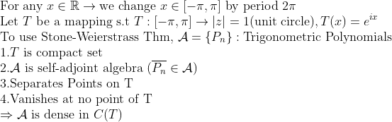 즉, 연속이고 (주기 2pi)인 경우의 Stone-Weierstrass Thm을 쓴 것 밖에는 없다!