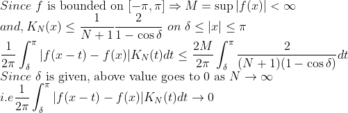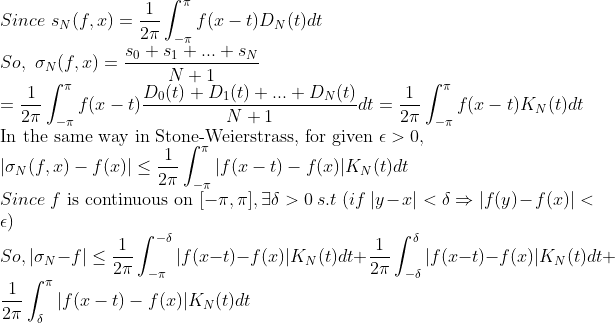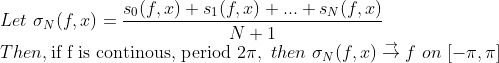 즉, 푸리에 급수를 평균값처럼 낸 것이 Uniformly Converge한다는 말이다! (f는 연속!)