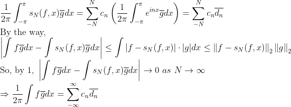Bessel's inequality는 일반적인 Orthonormal basis에서의 이야기였다면, 이번엔, 푸리에 급수에서 쓰는, sin nx, cos nx를 basis로 가질 때의 이야기이다! -> 부등식이 아니라, 등식으로 나오게 된다!